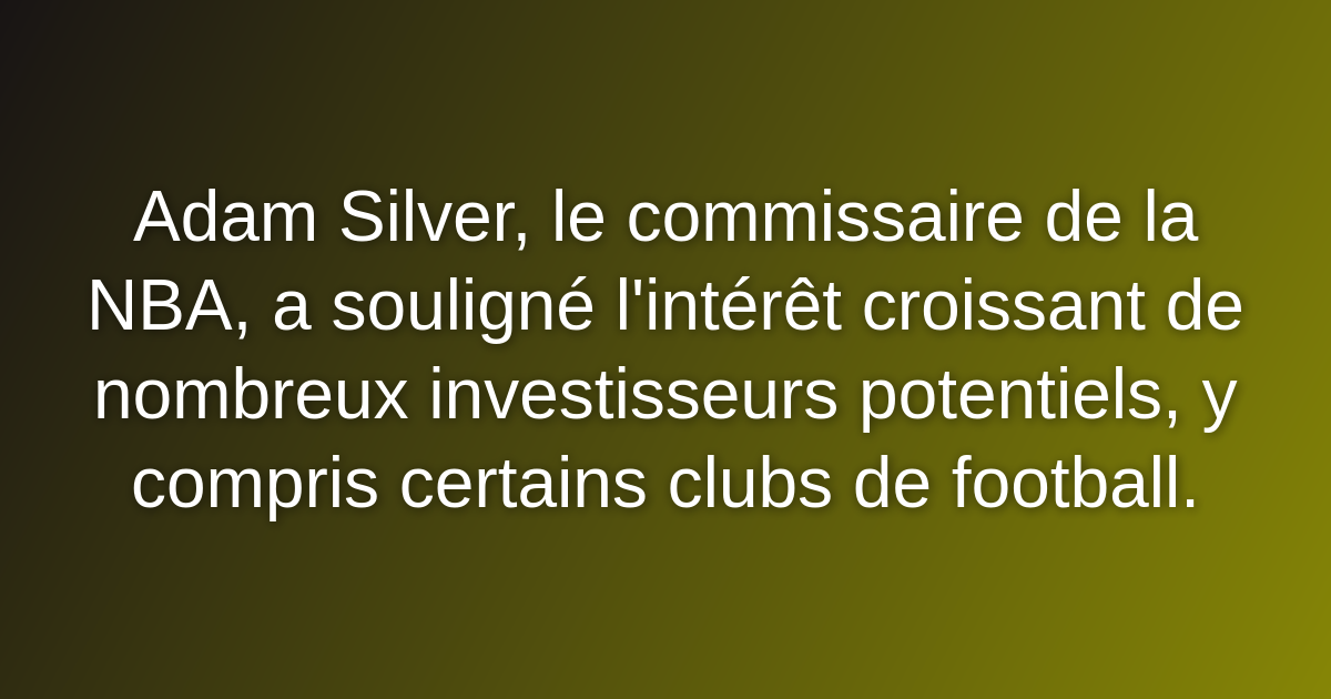 Silver a rappelé que la NBA avait confié aux banques J.P. Morgan et The Raine Group le soin de commencer les discussions, précisant qu’ils avaient reçu « beaucoup de marques d’intérêt positif ». Il a ajouté que ces investisseurs incluent « des clubs de football, certains ayant déjà une équipe de basket, des clubs de basket, mais aussi d’autres personnes », ce qui représente « un panel très large ».