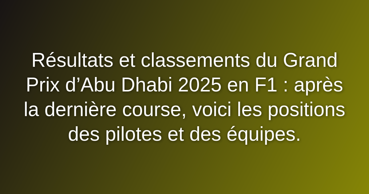 Le classement du Grand Prix d’Abu Dhabi pour l’année 2025